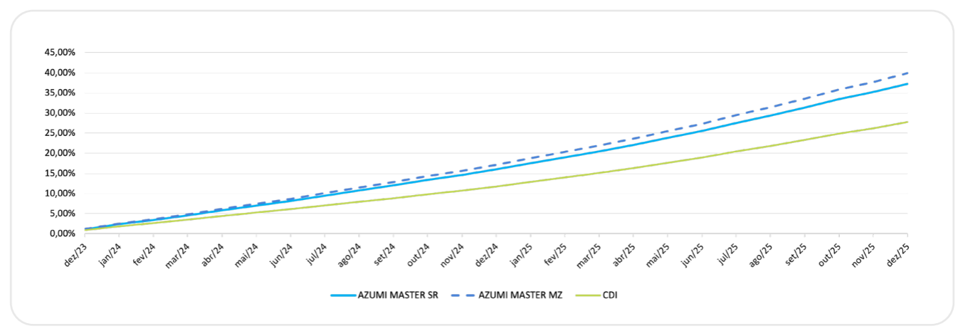 O AZUMI MASTER FIC FIDC (CNPJ 53.030.737/0001-13) tem como objetivo proporcionar aos cotistas a valorização das suas cotas através da aplicação dos recursos em cotas de fundos de investimento que realizam operações de aquisição de Direitos Creditórios.