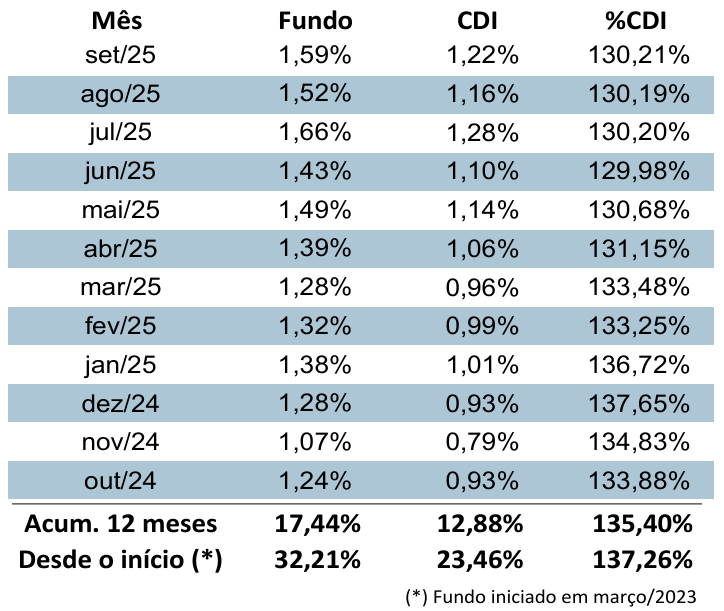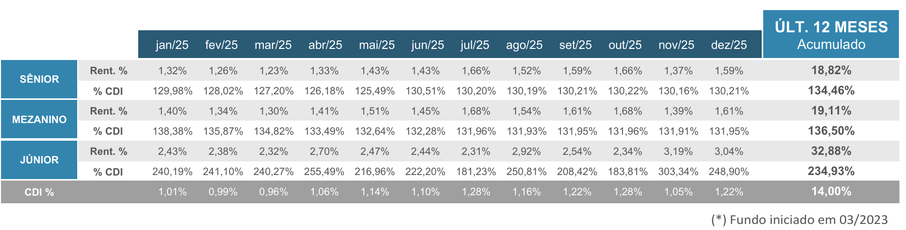 Pela alocação em cotas de fundos de investimentos em direitos creditórios, promovendo diversificação de carteiras, baixa volatilidade e zelando pelo patrimônio investido por nossos cotistas.