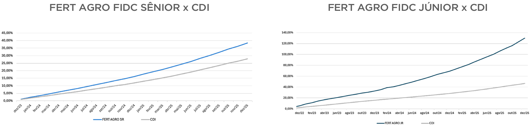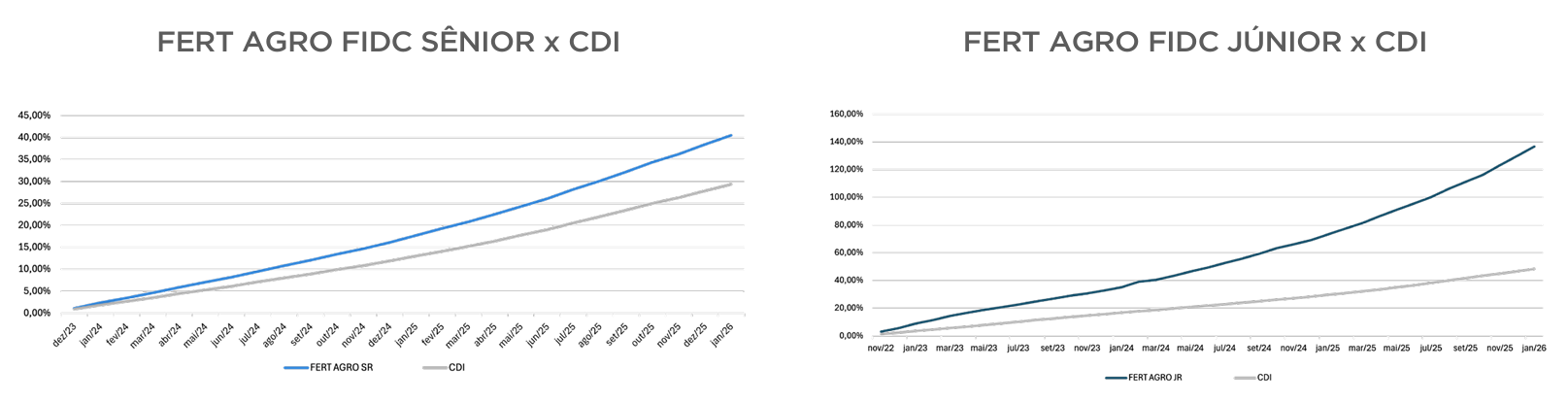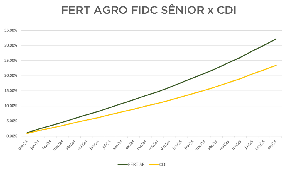 O fundo FERT AGRO FIDC (CNPJ: 47.669.200/0001-03) tem como objetivo obter retornos acima do CDI (Certificado de Depósito Interbancários).