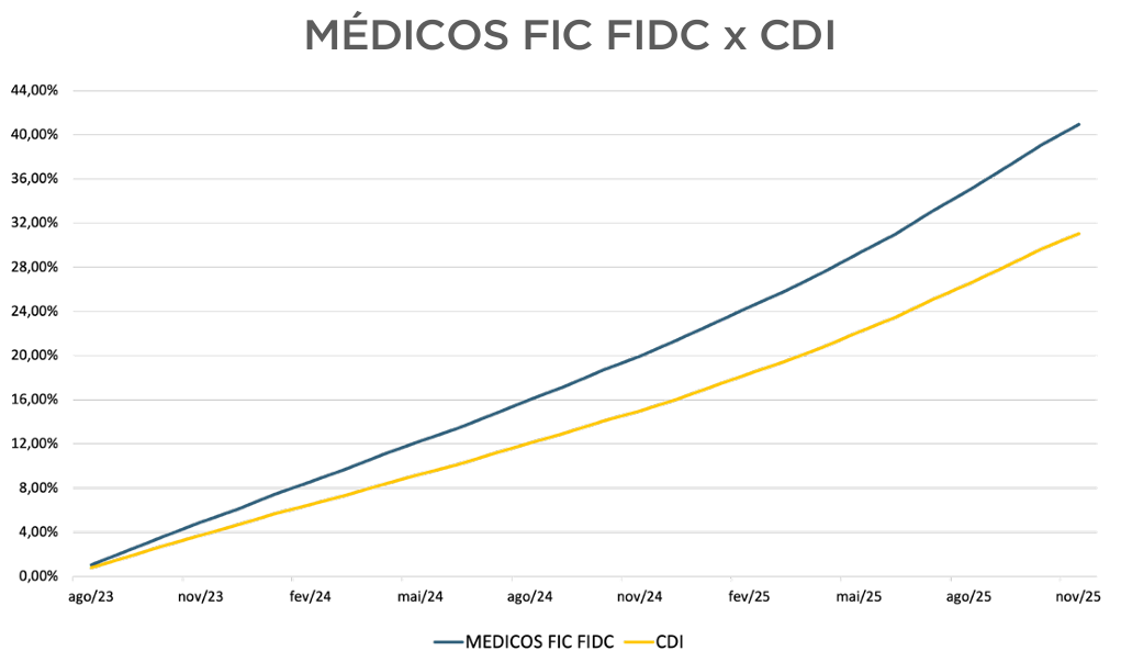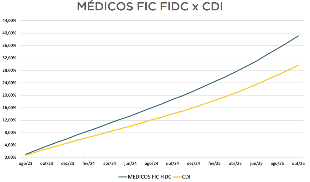 O fundo MÉDICOS EXCLUSIVE FIC FIM CP (CNPJ: 51.581.780/0001-41) tem como objetivo obter retornos acima do CDI (Certificado de Depósito Interbancários).